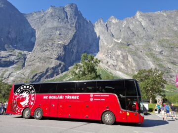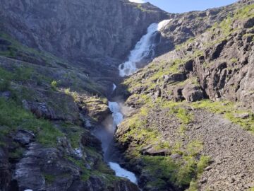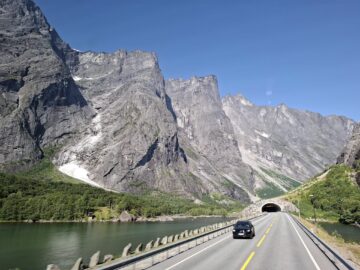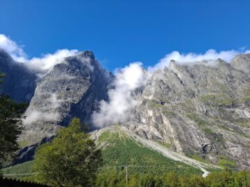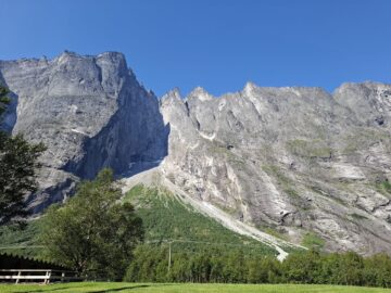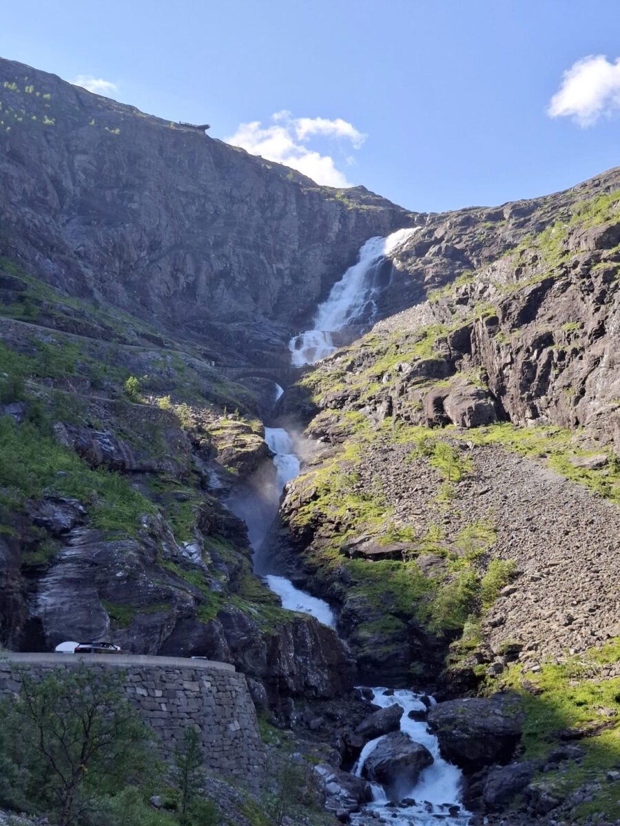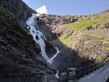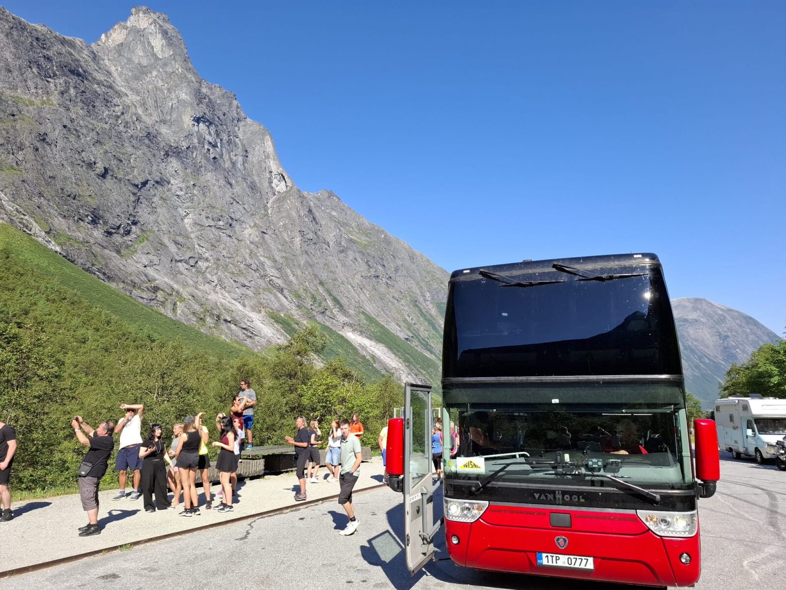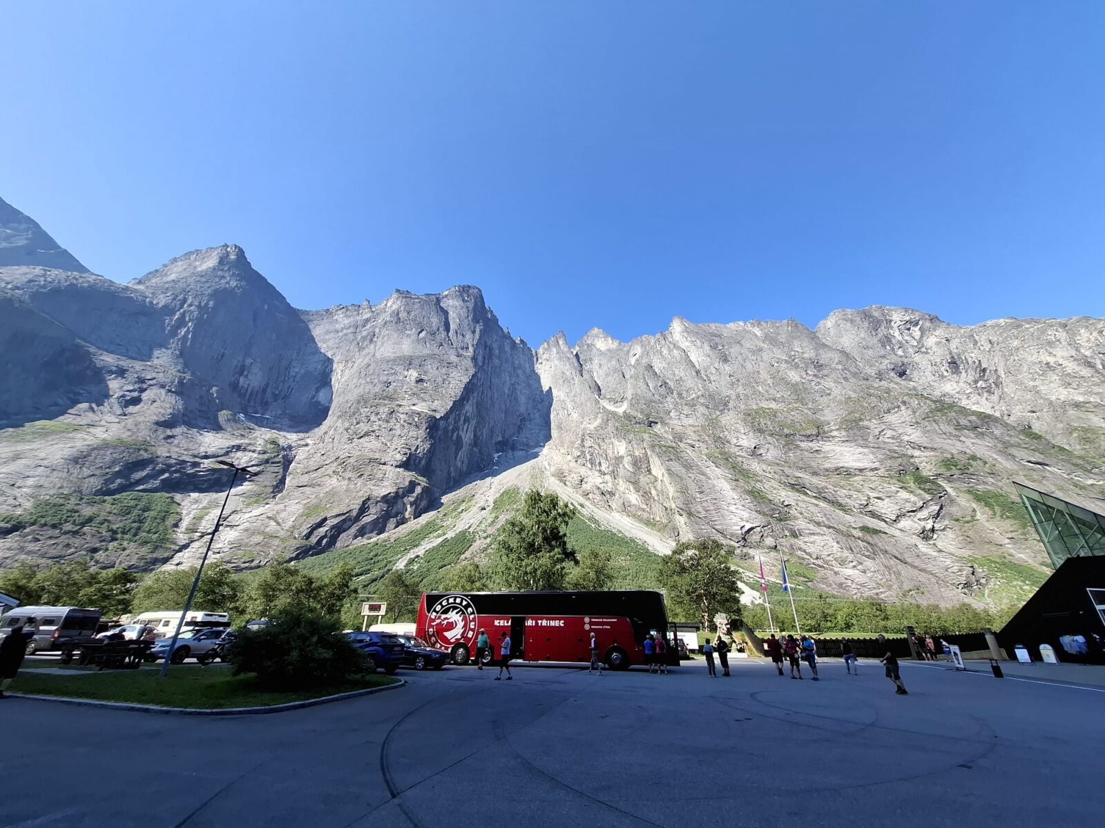 Zastávka pod Trollveggen. Spatříte vyhlášenou stěnu Trolů v národním parku Reinheimen, která je oblíbeným cílem nejen adrenalinových šílenců, ale i fotografů. Je nejvyšší kolmou skalní stěnou v Evropě, od úpatí k vrcholu měří 1100 m. Nezapomenutelným zážitkem bude výjezd věhlasnou Trolí cestou, která je součástí Zlaté cesty severu. Klikatí se jedenácti serpentinami a podél jednoho z nejkrásnějších vodopádů Stigfossen, překoná převýšení přes 800 m. Na vrcholu vás čeká naprosto úchvatný a dechberoucí pohled z vyhlídky, která je vystrčena nad příkrém skalním srázu do údolí Isterdalen. Jedna z nejpopulárnějších atrakcí v Norsku si vás nepochybně získá a snímky z Trolí stezky se určitě stanou chloubou vašeho cestovatelského archívu.