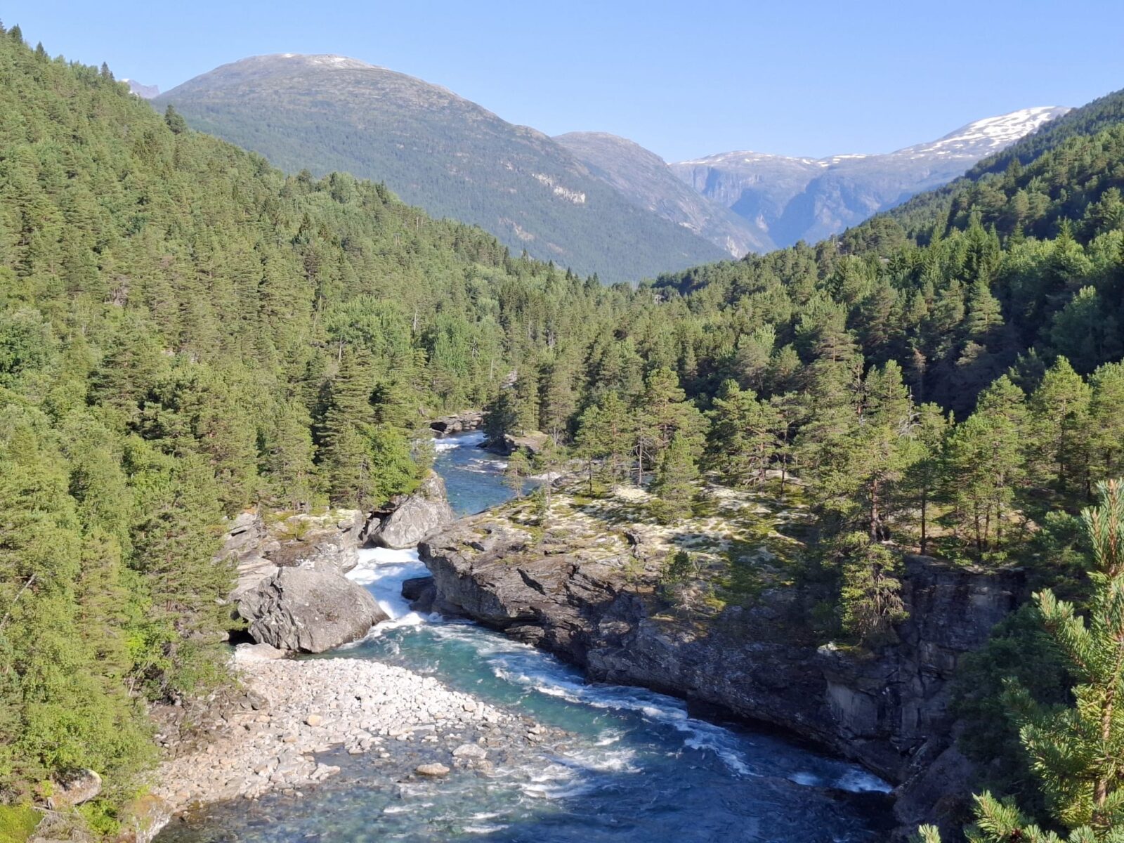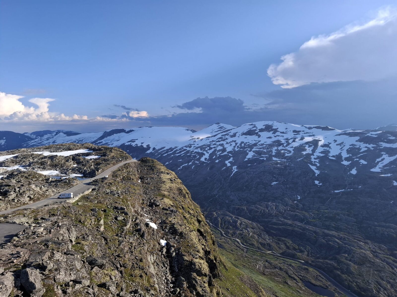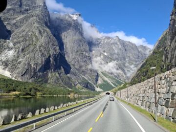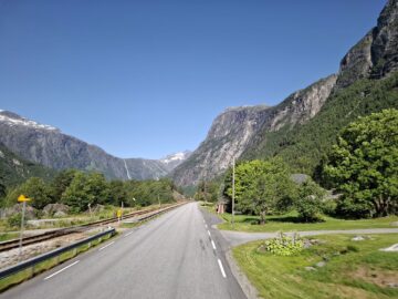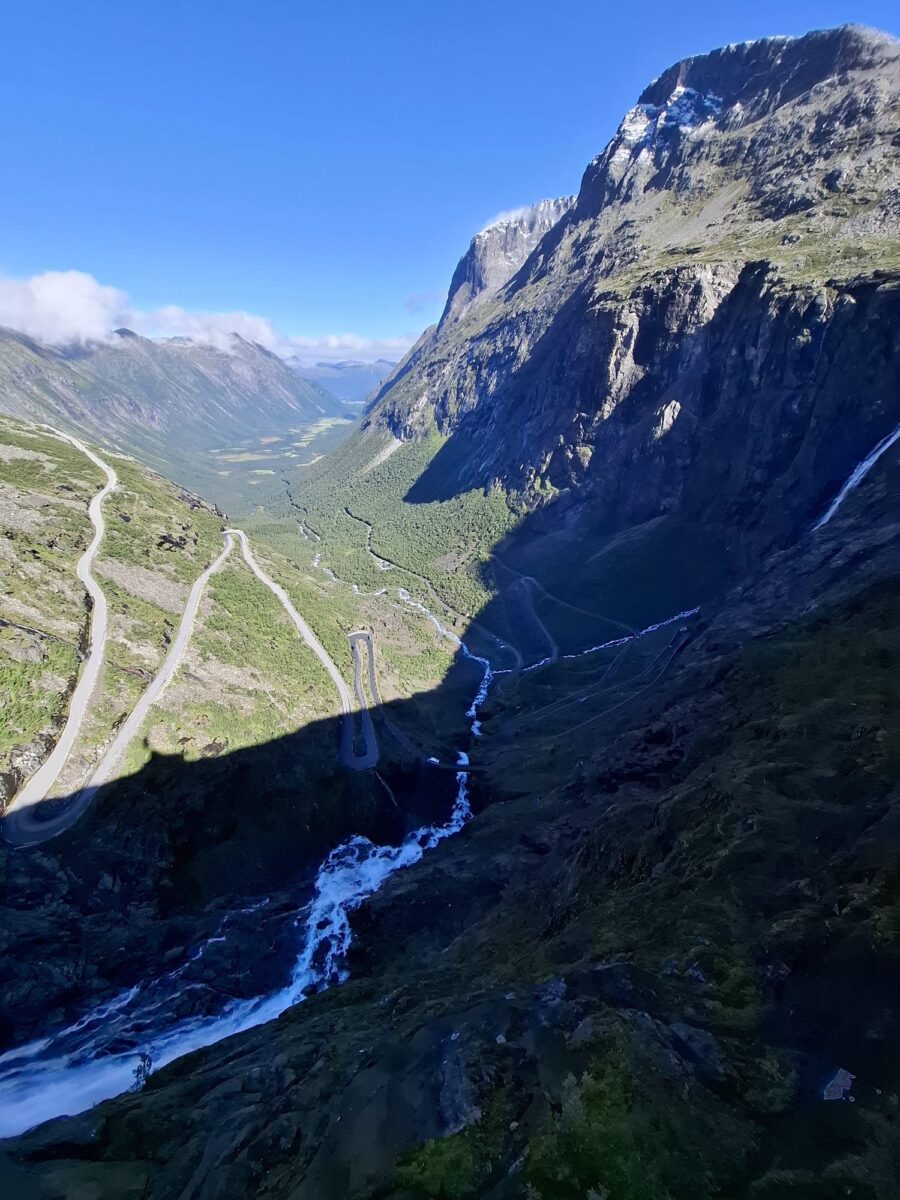 Pojedeme hlubokým a úzkým údolím Romsdalen vytvořeným řekou Rauma. Cesta vede úzkou soutěskou s kolmými skalními stěnami. Údolí je dlouhé přes 60 km a okolní stěny dosahují výšku téměř 2000 m.
