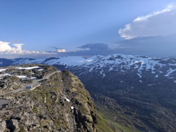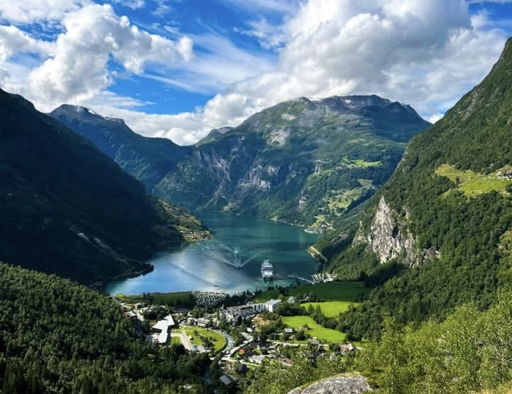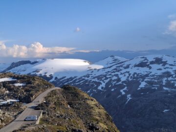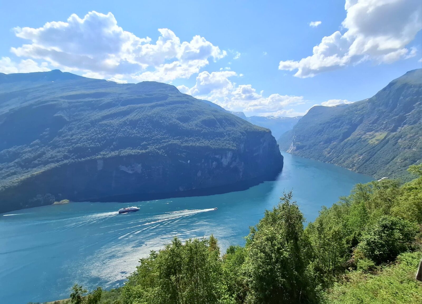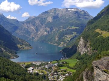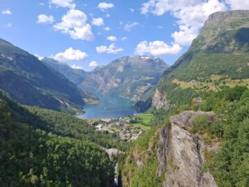 Pak přijde na řadu horská Orlí cesta, která nás přivede k nejznámějšímu norskému fjordu Geirangerfjord. Turistům zde nabízí specialitu, a to plavbu lodí po jednom z nejatraktivnějších míst v Norsku. Během plavby se můžete kochat vysokými vodopády Sedm sester, Nápadník, Závoj, díky, kterým získává Geiranger dramatický vzhled. Poté výjezd nekonečnými serpentinami na horu Dalsnibba, odkud se nabízí panoramatický rozhled na hory středního Norska: Jedinečný výhled na údolí, fjordy a stíny v kopcích, jezero s vodou po ledovcích, patří k nezapomenutelným zážitkům. Nocleh.