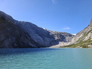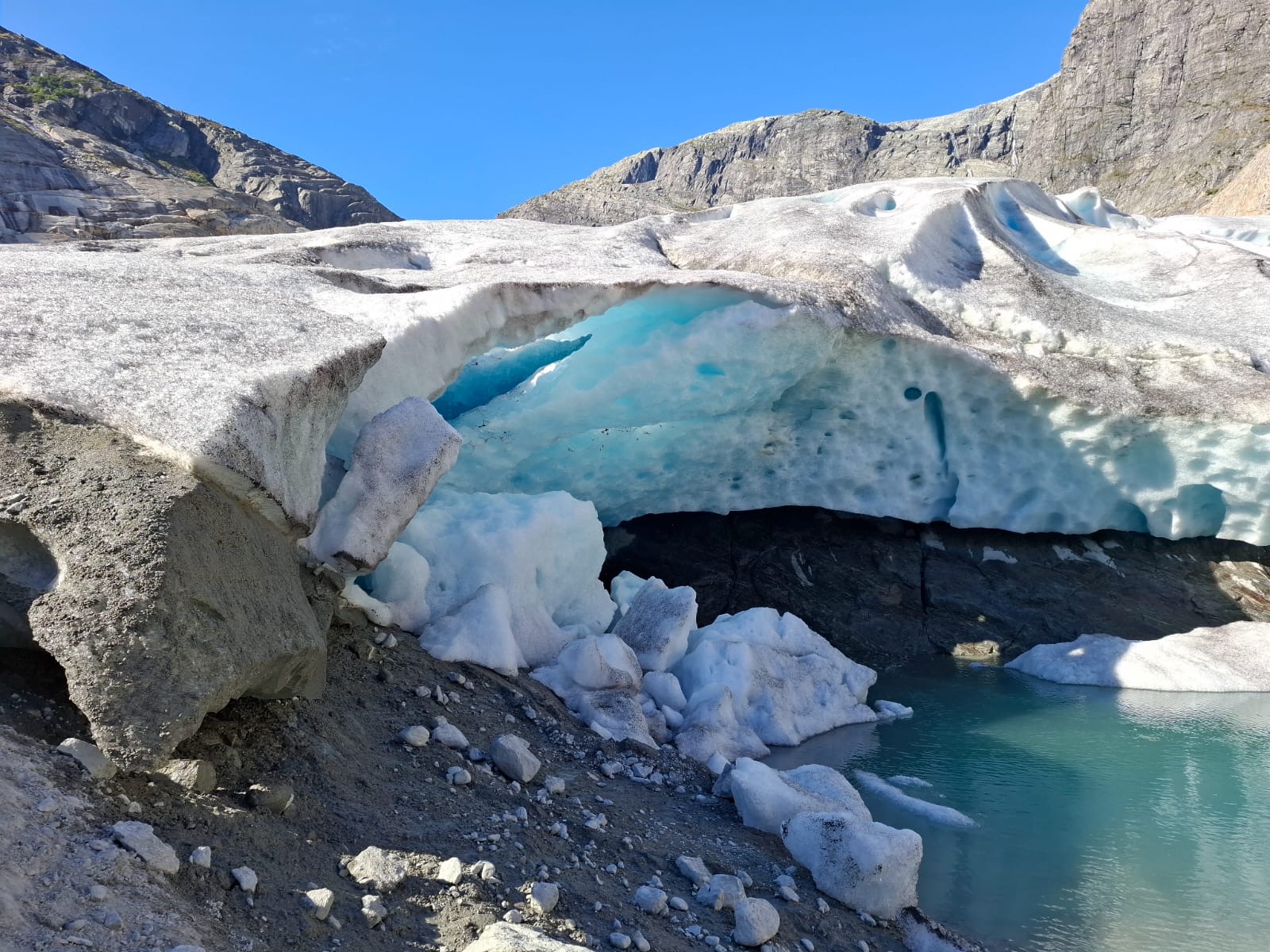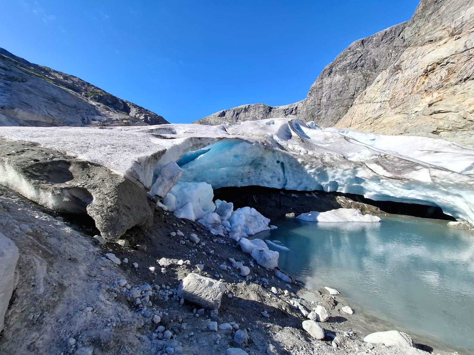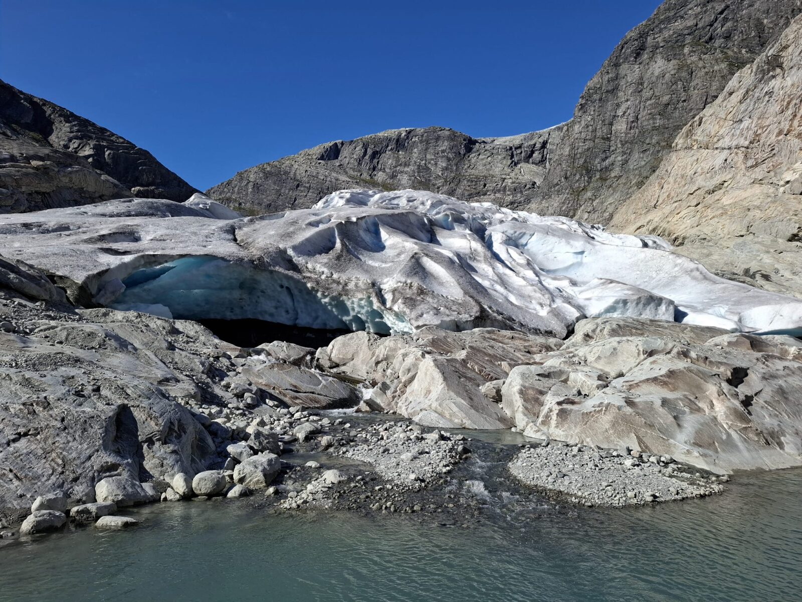 Odpoledne výšlap k ledovcovému splazu Nigardsbreen, který je součástí pevninského ledovce Jostedalsbreen.